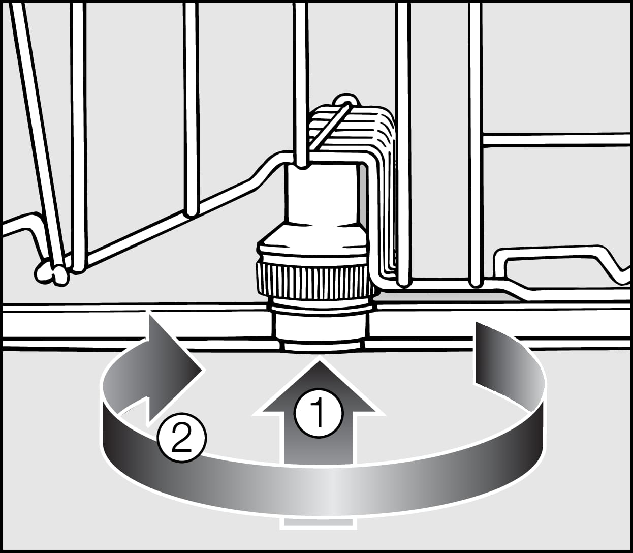 Zatlačte střední ostřikovací rameno nahoru, aby zaskočilo ozubení (1).